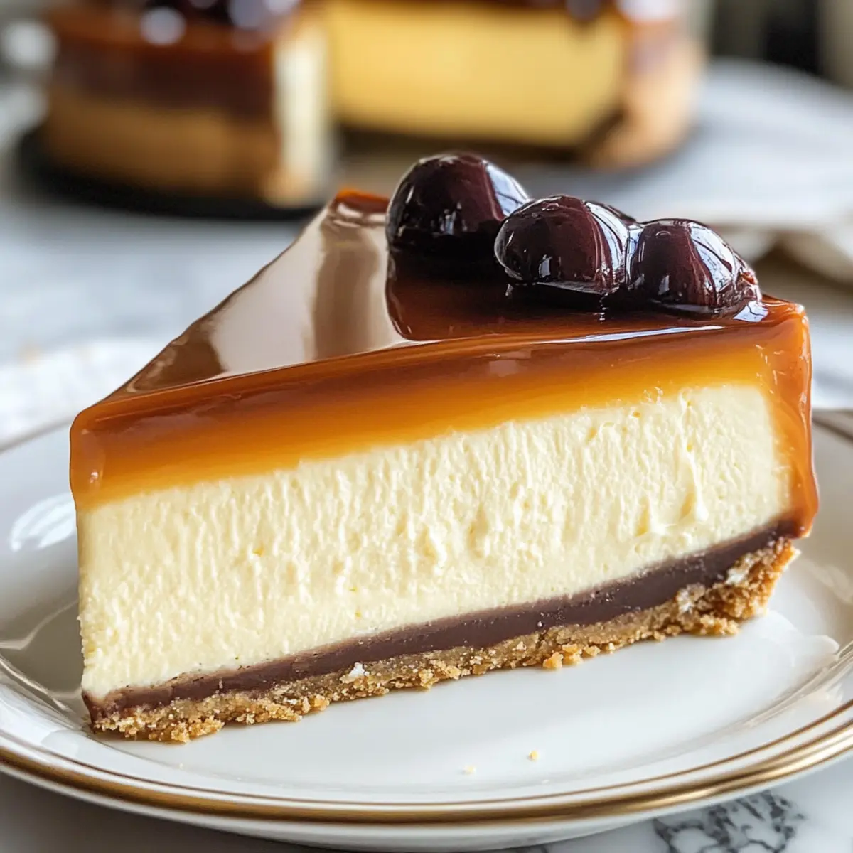 Süße Fruchtnote: Fügen Sie eine Schicht frischer Himbeeren oder Erdbeeren auf die Karamellschicht hinzu, um fruchtige Frische in den reichen Käsekuchen zu bringen. Die süß-säuerliche Note harmoniert wunderbar mit dem Karamell.