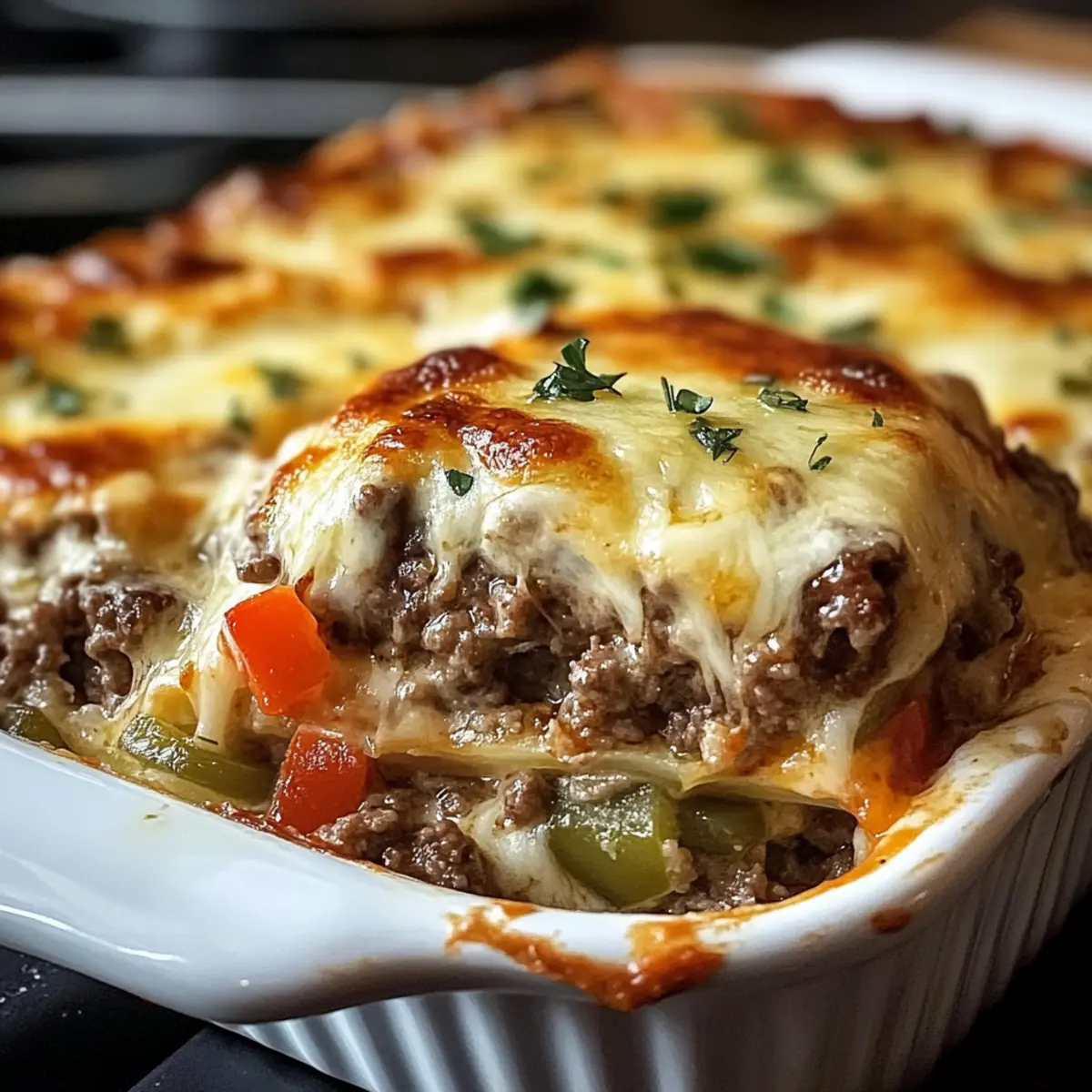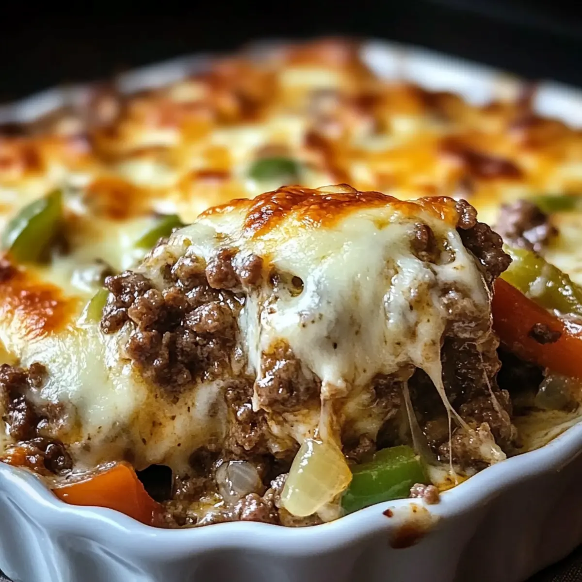 Niedrig-Kohlenhydrat Philly Cheesesteak Auflauf für Komfort