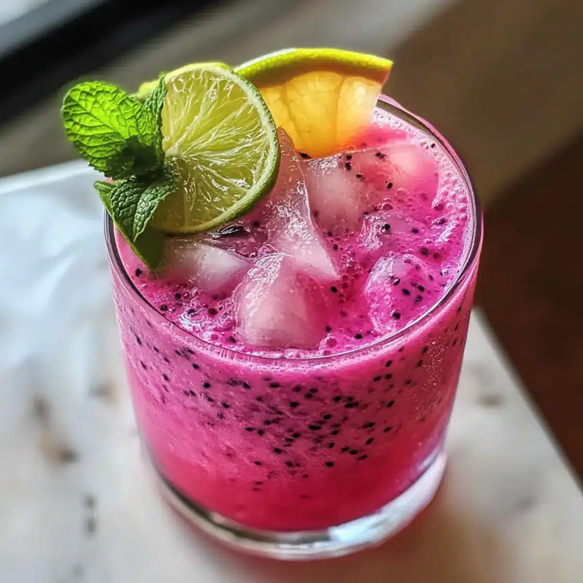 Gieße die fertige Pinke Drachenfrucht Colada sofort in dekorative Gläser. Verwende einen Löffel, um sicherzustellen, dass jeder Schluck die köstliche, cremige Mischung enthält. Garnieren kann mit frischen Limettenscheiben und Minzblättern geschehen, um dem Getränk eine tolle Optik und zusätzlichen Geschmack zu verleihen.