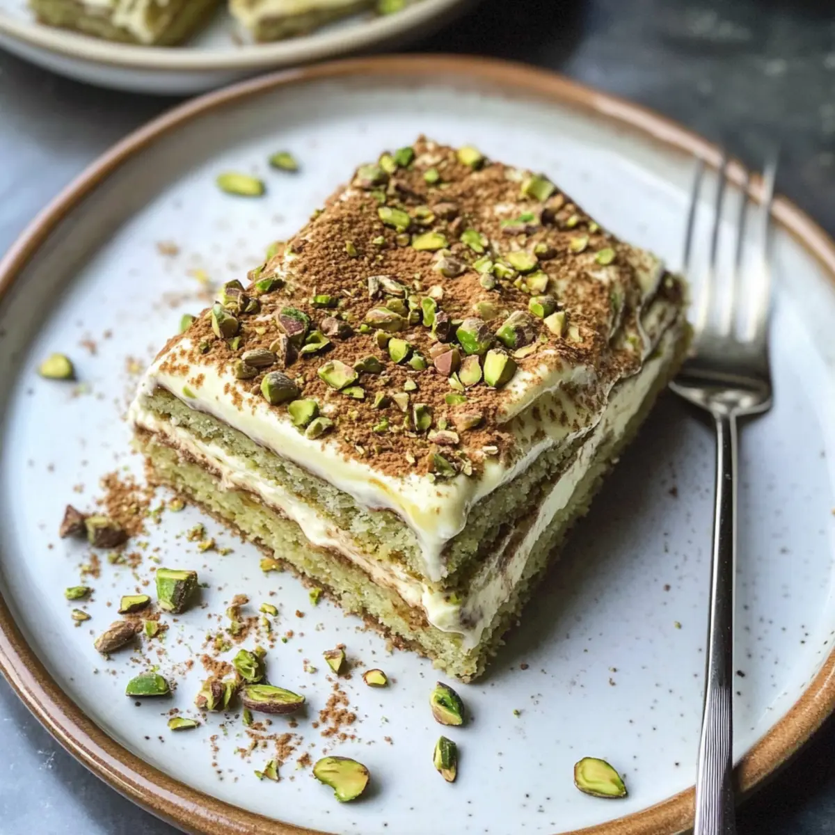 Nussiger Genuss: Die Kombination aus cremigem Mascarpone und nussiger Pistazie verleiht diesem Dessert einen einzigartigen und köstlichen Geschmack.