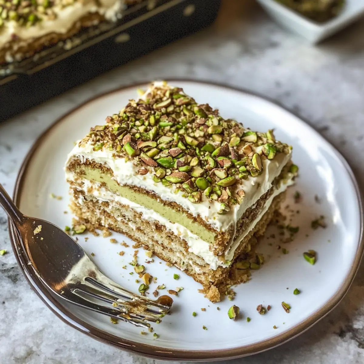 - Pistaziencreme – sorgt für den nussigen Geschmack, der dieses Dessert besonders macht.