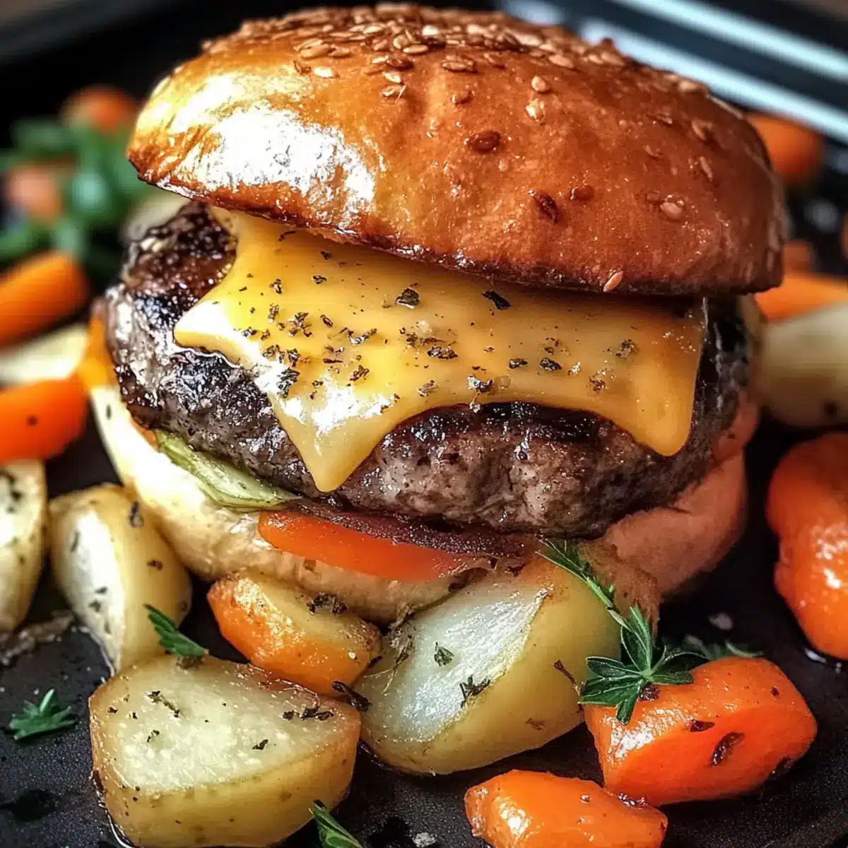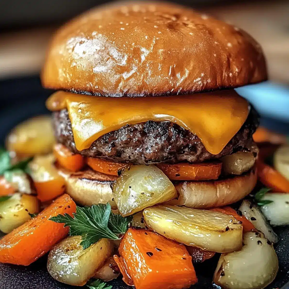 Saftiger im Ofen gerösteter Gemüse-Cheeseburger