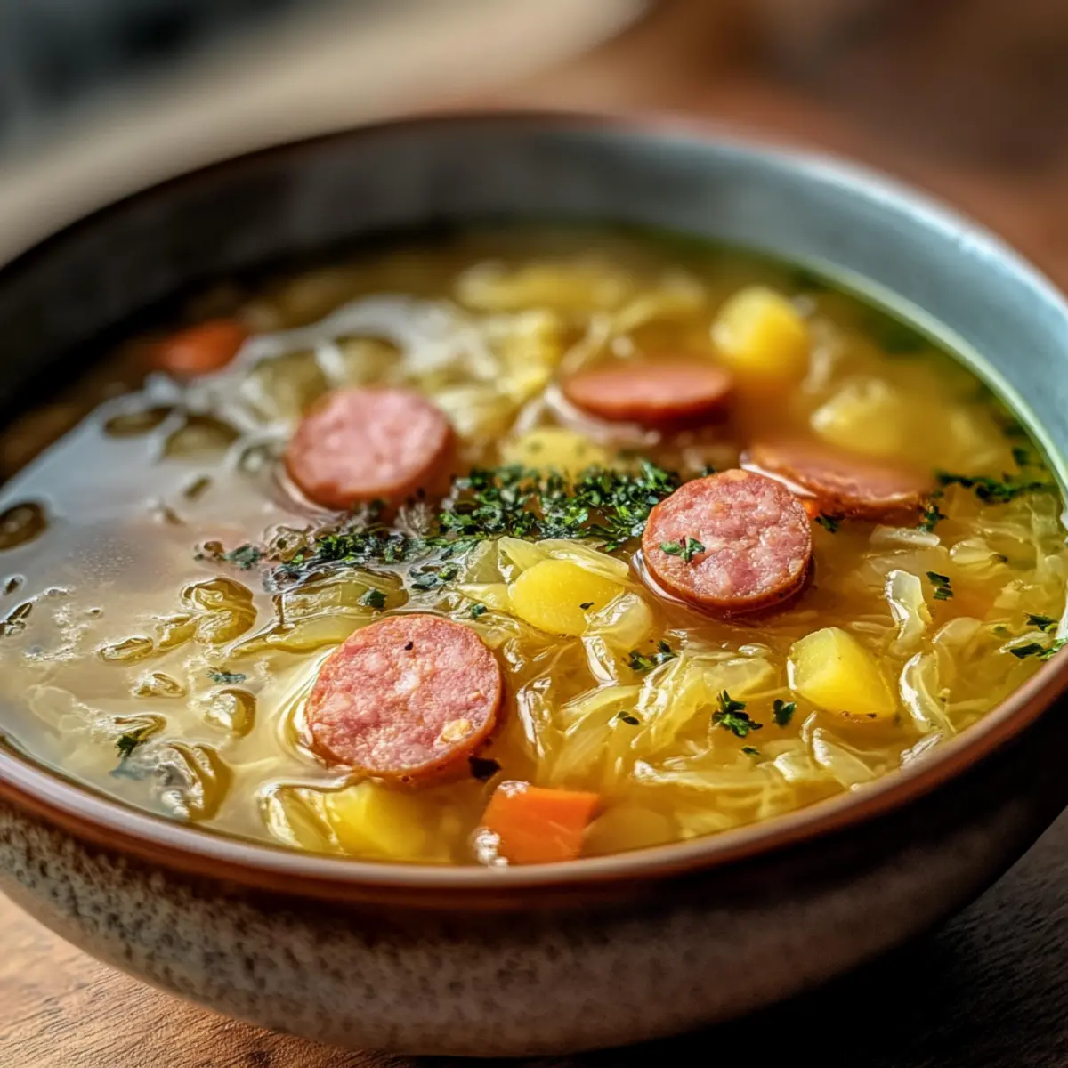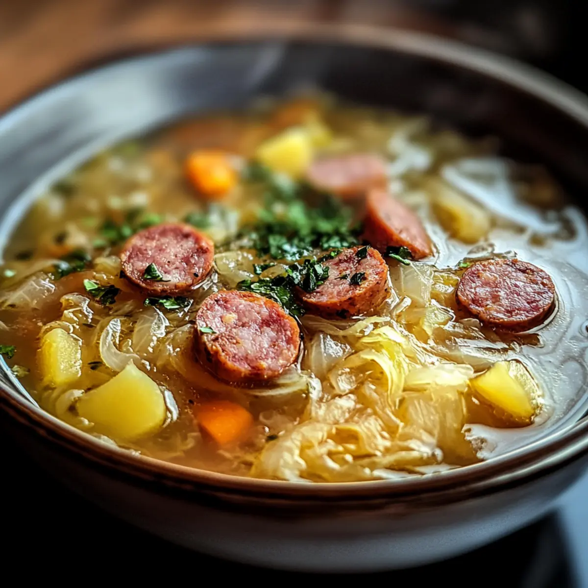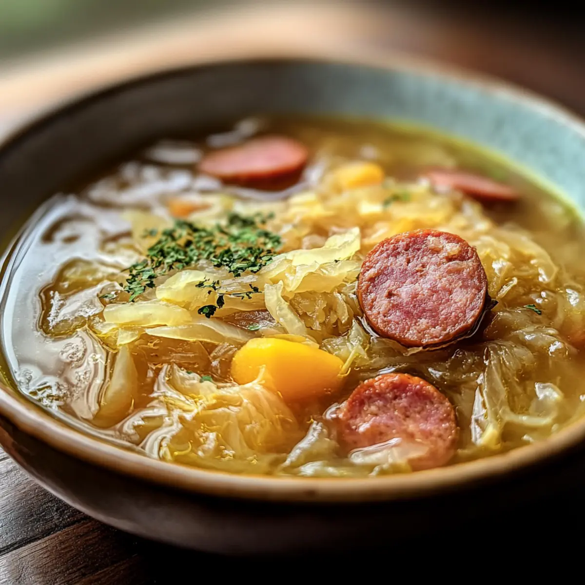 Deftige Sauerkrautsuppe mit geheimem Schwung