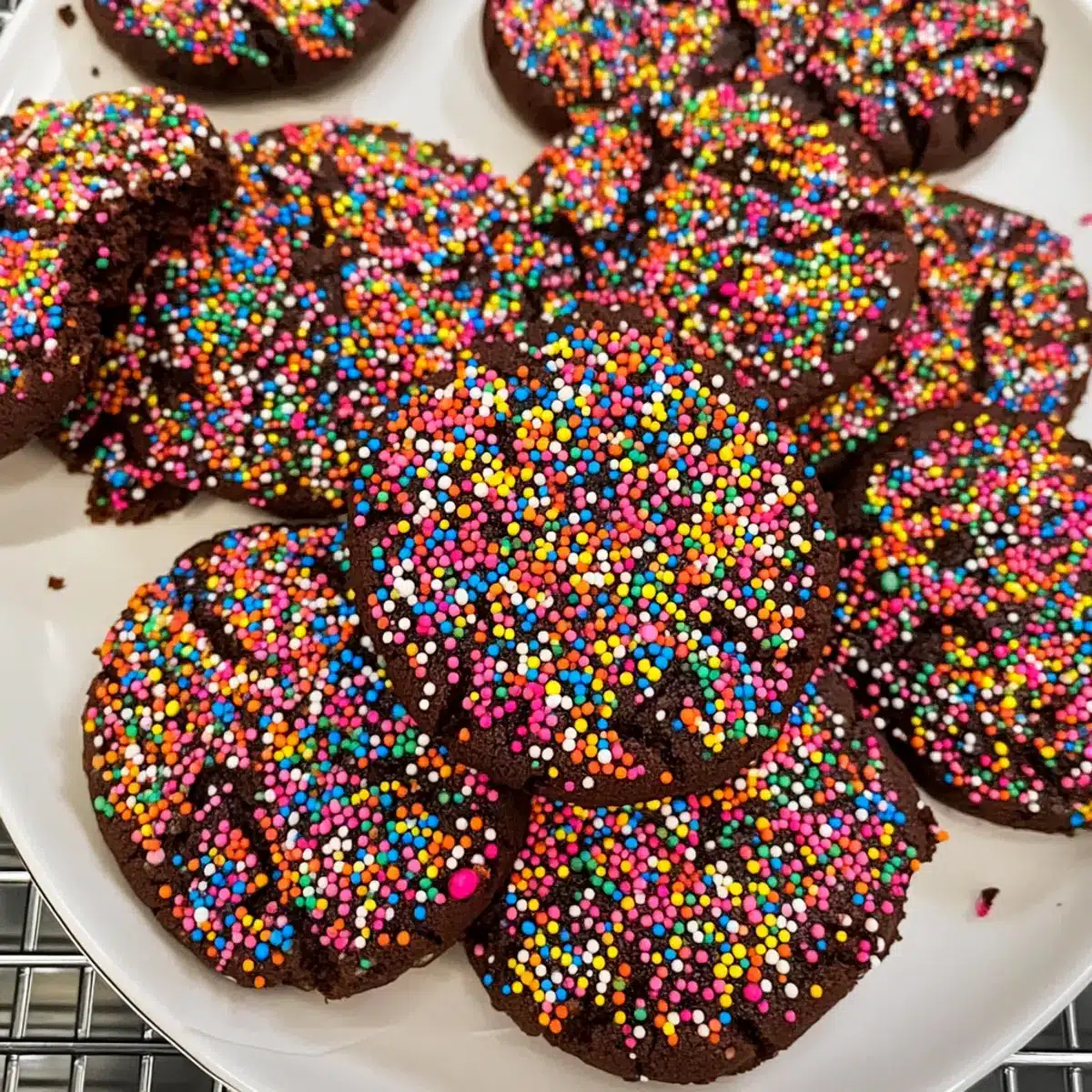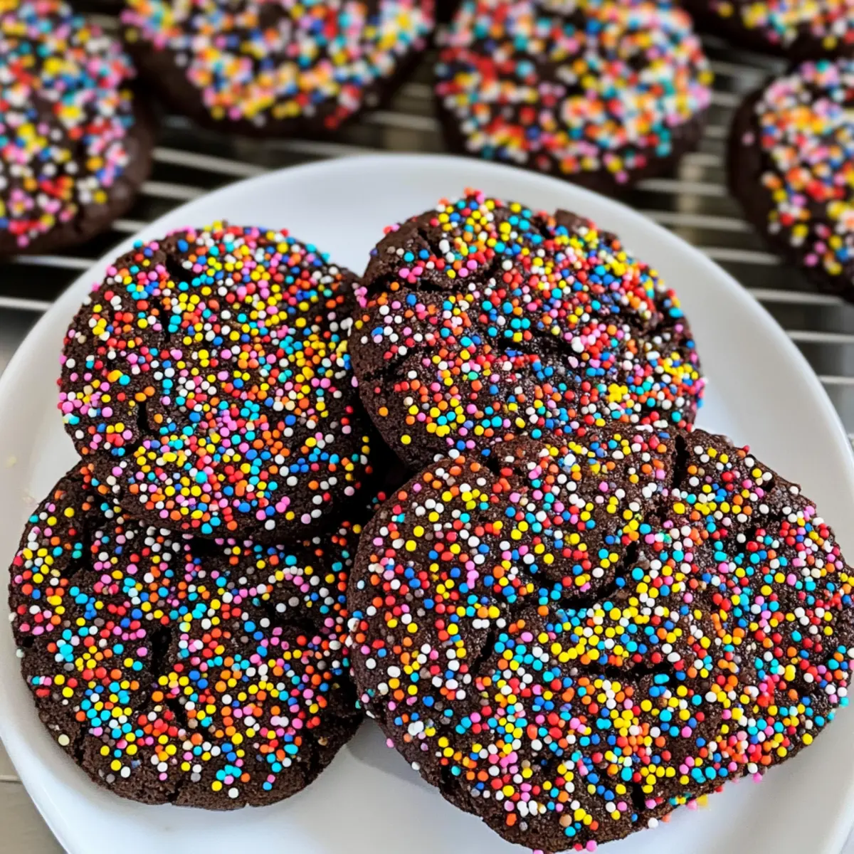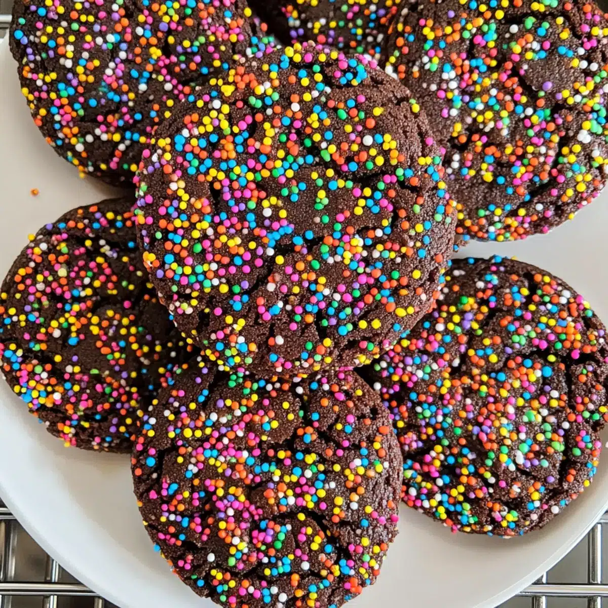 Diese Schokoladenstreusel-Kekse sind perfekt für die Vorbereitung im Voraus! Sie können den Keksteig bis zu 24 Stunden im Voraus zubereiten und im Kühlschrank aufbewahren, um die Frische zu erhalten. Formen Sie die Teigbälle und wälzen Sie sie in den bunten Streuseln, bevor Sie sie in einem luftdichten Behälter lagern. Das verhindert, dass die Sprinkles ihre Farben verlieren oder feucht werden. Wenn Sie bereit sind zu backen, heizen Sie den Ofen vor und legen Sie die gekühlten Teigbälle auf ein Backblech – backen Sie sie dann für 8-10 Minuten. Auf diese Weise genießen Sie frische Kekse mit minimalem Aufwand und maximalem Geschmack!