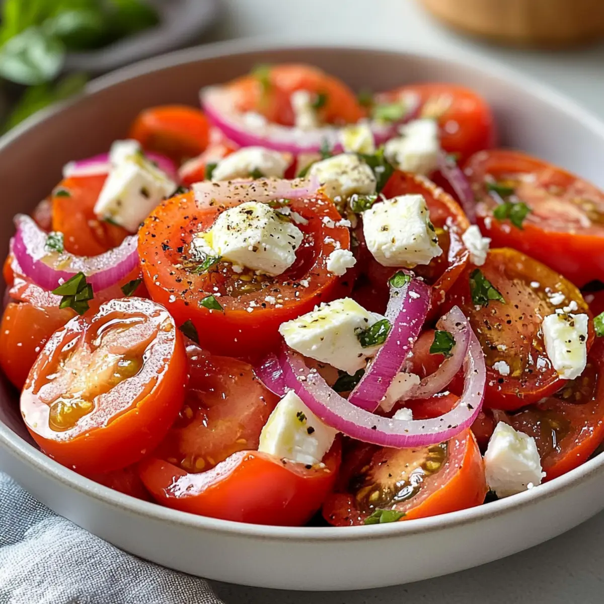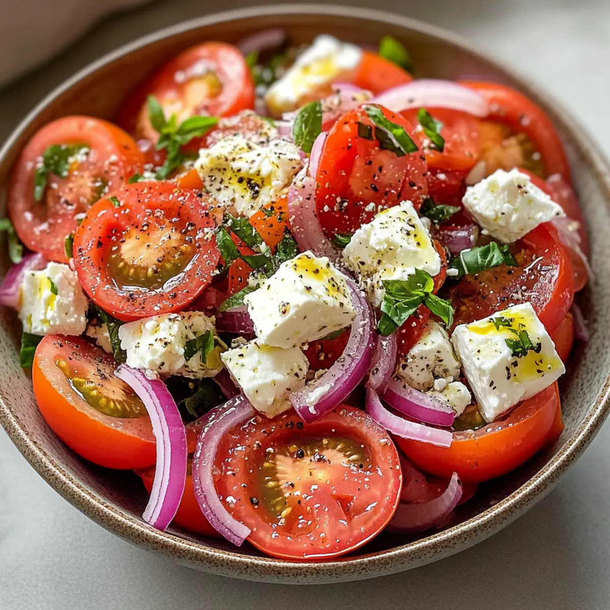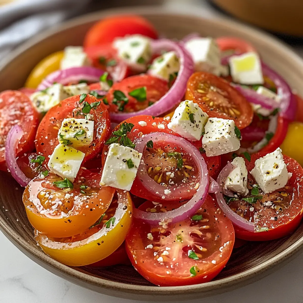 Tomatensalat mit Feta Zwiebeln für heiße Sommertage