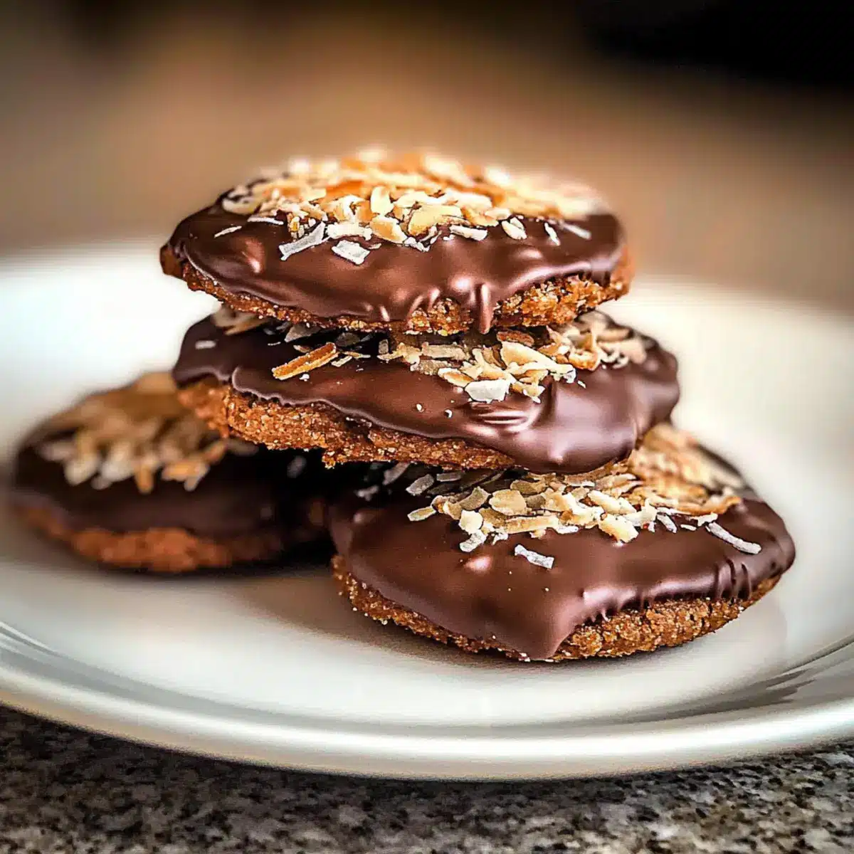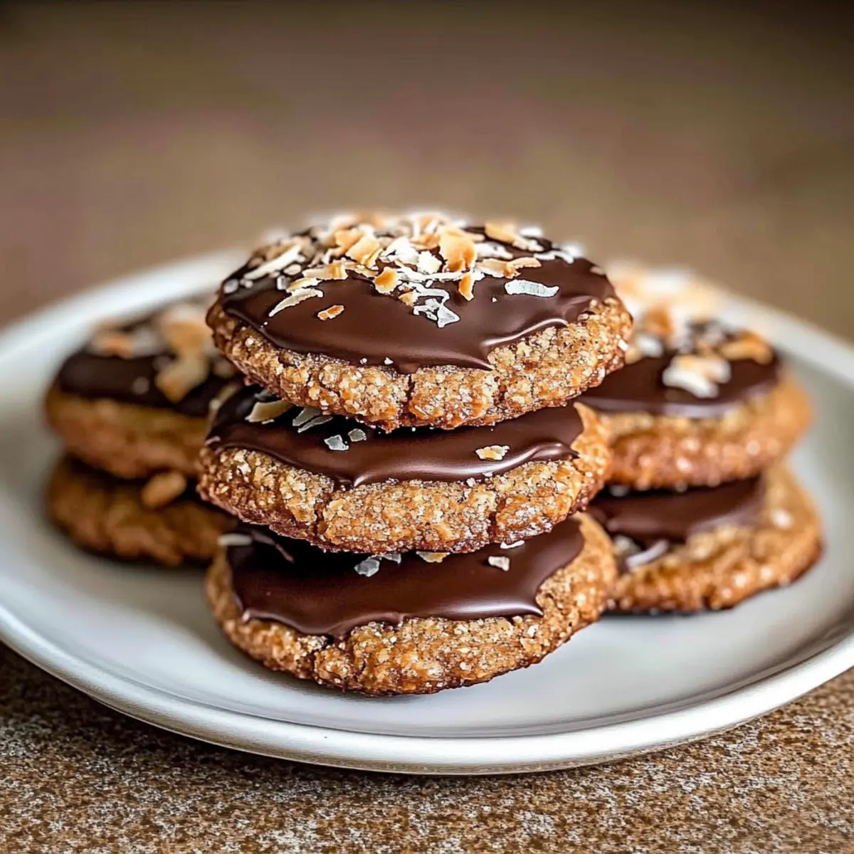 Bestricht die abgekühlten Kekse mit der geschmolzenen Schokolade und streut die Kokosflocken darüber. Diese letzte Dekoration verleiht den Keksen eine extra Geschmacksschicht. Lasst die Schokolade fest werden, bevor ihr die Kekse serviert oder aufbewahrt.