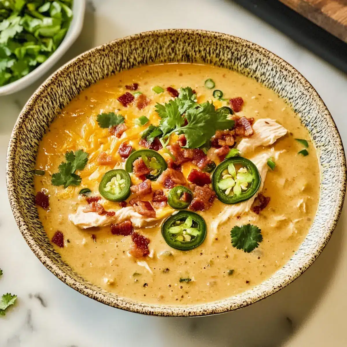 Diese Würzige Jalapeño-Popper-Hühnchen-Suppe wird deine Sinne verzaubern und ist die perfekte Wahl für kalte Tage oder gesellige Abende!